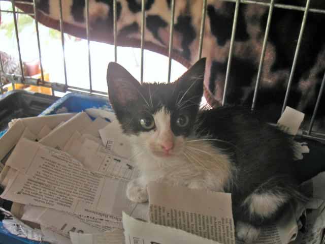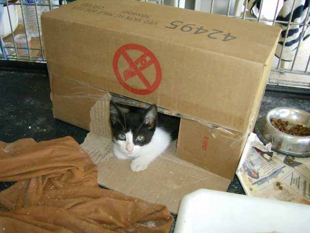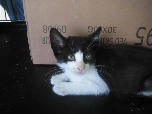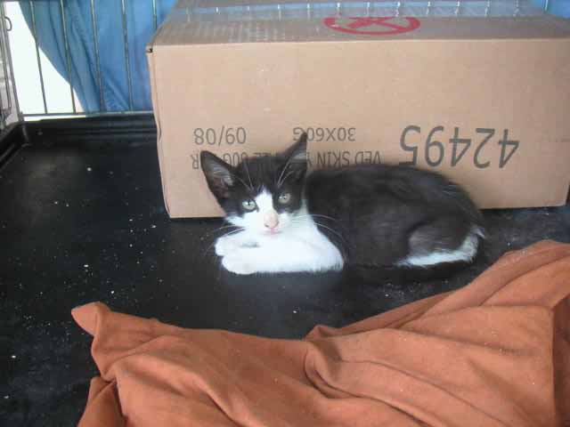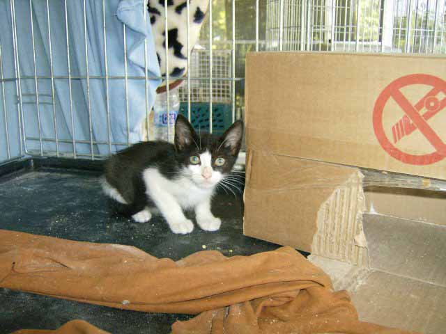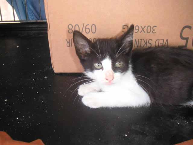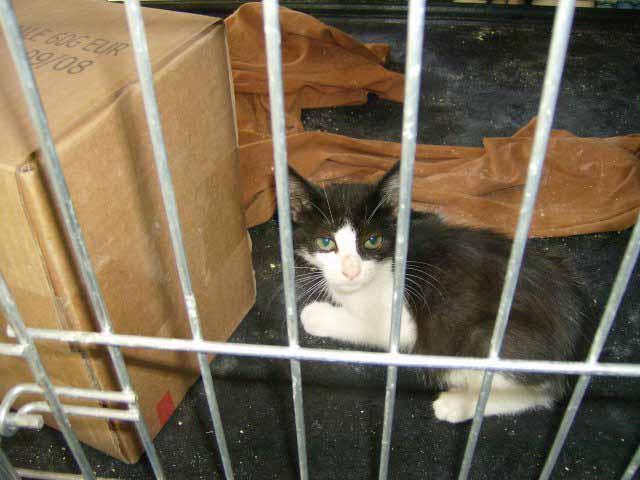 Graffity ist ca. geboren Ende Juli/Anfang August 2007. Maria hat sie gefunden unter einem Auto - verdreckt, verfloht und abgemagert. Sie hat sofort eine Riesenbüchse gemampft und sieht auch schon ganz keck durch die Gegend. Nun ist sie erst mal in Quarantäne. Graffity ist menschenbezogen und lieb - sie muß nur noch hochgepäppelt werden.
